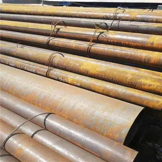 滁州gb3087无缝钢管要用钢锭或实芯管料经破孔制成毛管,随后经热扎、冷轧或冷拨制成。滁州gb3087无缝钢管在中国钢管业中具备重要的位置。据不完全统计,我国目前无缝管生产公司约240多家,无缝管机组约250多套,年产能力约450多万吨。从规格看,滁州gb3087无缝钢管的原料是圆管坯,圆管胚要经过切割机的切割制作成长短约为1米胚料,并经输送带送至溶炉内加温。钢坯被送进溶炉内加温,温度约为1200℃。燃料为氢气或乙炔。炉内温控是关键性的难题.圆管坯出炉后要经过压力穿孔机开展穿空。一般较常见的穿孔机是锥形辊穿孔机,这类穿孔机生产效率高,产品品质好,破孔扩径量多,可穿多种钢种。破孔后,圆管坯就先后被三辊斜轧、连轧或挤压。挤压后应脱管定径。定径机根据锥形钻头高速运转入钢胚打孔,产生钢管。钢管内径由定径机钻头的直径长短来决定。钢管经定径后,进入冷却塔中,根据喷水冷却,钢管经冷后,就要被校直。钢管经校直后由输送带送往金属探伤机(或压力试验)进行内部探伤。若钢管内部有裂痕,气泡等问题,将被检测出。钢管质检后还要通过严格手工选择。钢管质检后,用漆料喷上编号、规格、生产日期等。并由吊车吊入仓库里。